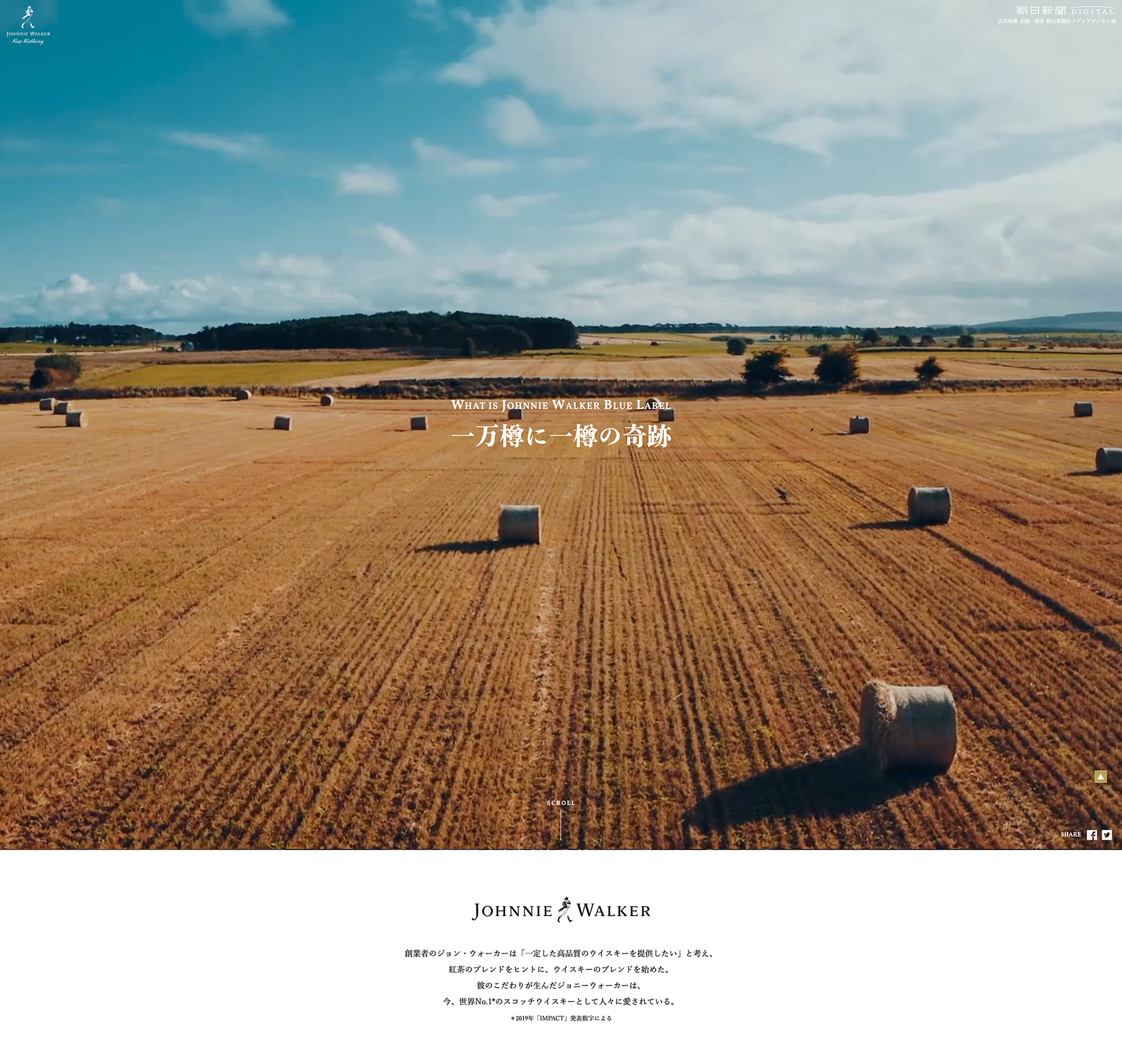 2019年に、200周年という節目を迎えたブレンデッドスコッチウイスキー「ジョニーウォーカー」。その最高峰に位置する「ジョニーウォーカー ブルーラベル」の魅力やブランドの世界観を伝えるため、俳優、映画監督、画家として活躍する奥田瑛二さんをキャスティングし、スコットランドの蒸留所を訪ねる様子をドキュメンタリータッチで描いた企画。映像監督にはドキュメンタリー作品を得意とする遠藤尚太郎監督を起用。4日間におよぶ現地ロケ、そしてそこで得たインスピレーションをもとにオリジナルラベルのデザインに挑む奥田瑛二さんの姿を記録した短編ムービーを特設ウェブサイト上で公開した。併せて、新聞紙面上ではそのロケ取材の様子を振り返るインタビュー記事広告も掲載。動画、ウェブ、紙面が連動する施策としてワンストップで展開した。なおアートディレクターの金子は現地でのディレクションだけでなくスチール撮影も行っている。